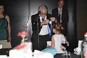 Prof. Bogomil Nikolov had another prize up his sleeve, for The Youngest Participant in the Projects of the MSSS. It was awarded to Elise Pelsdonk (four and a half years old) for her medal Flying Carpet. She received the medal with a diploma and then walked around every table to let the participants see her award. A very proud receipient!